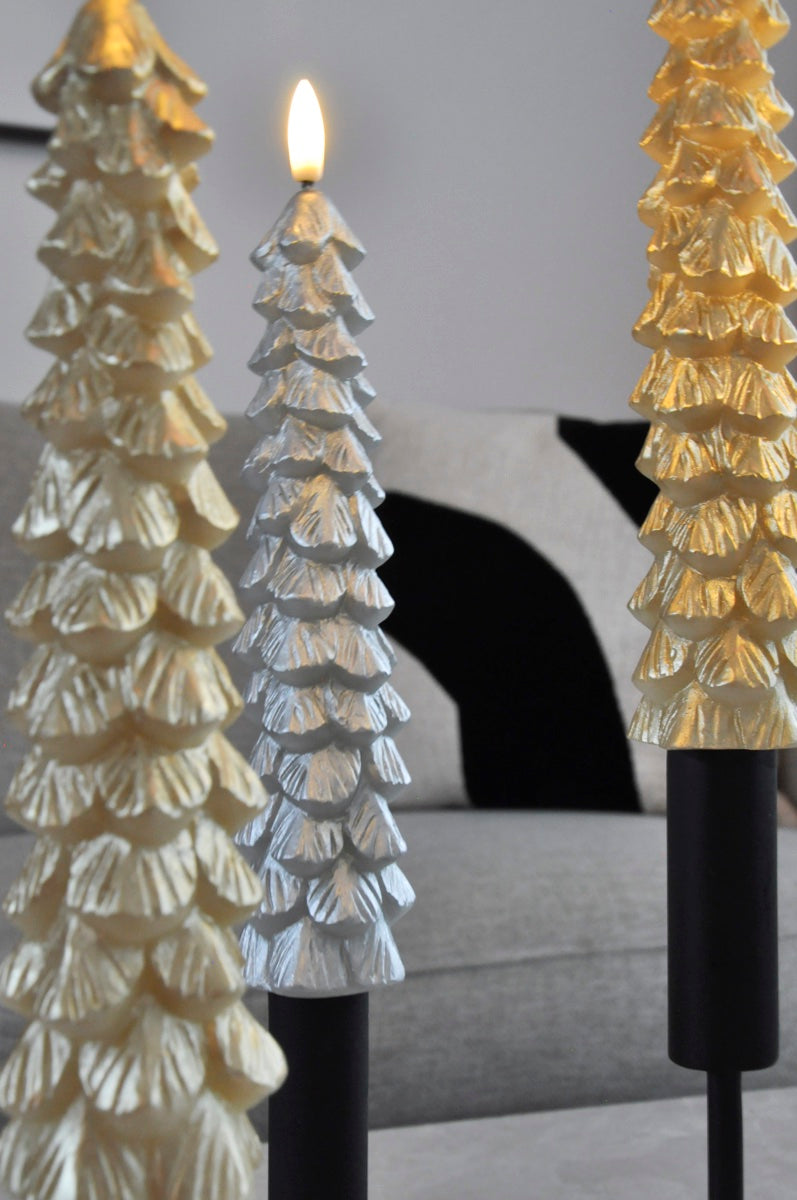 Voeg een betoverende sfeer toe aan je kerstsetting met de Aifcandles LED X-MAS Tree Kaarsen. Dankzij hun elegante metallic afwerking en realistische waxdesign zijn deze kaarsen een stijlvol en veilig alternatief voor echte kaarsen.