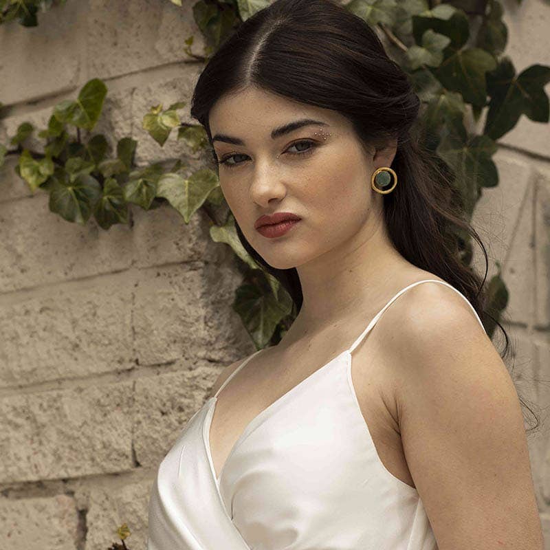 Met de hand vervaardigd van verguld messing en natuurlijke stenen, waardoor elk paar uniek is in kleur en vorm.