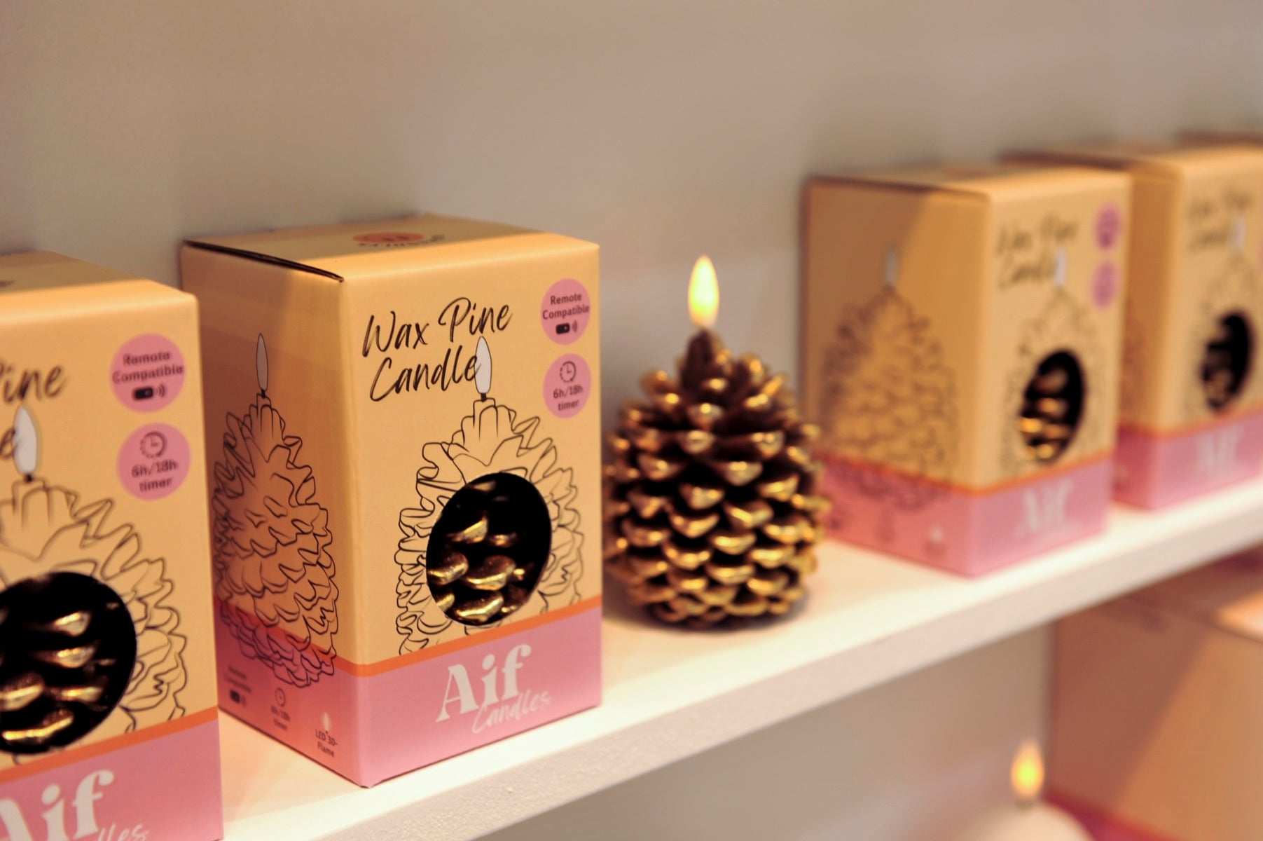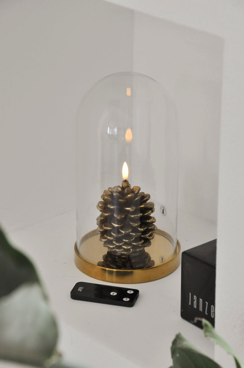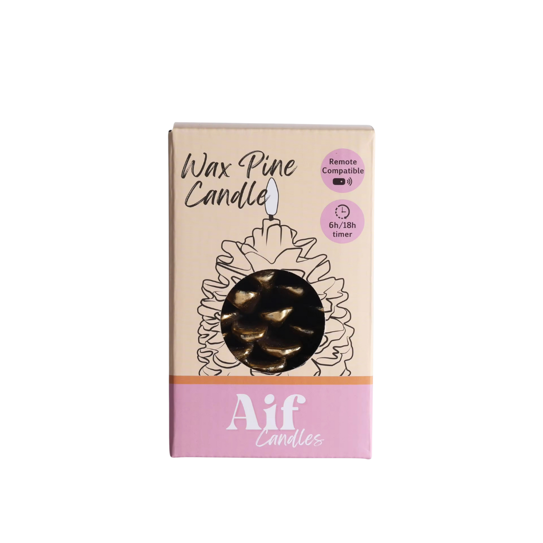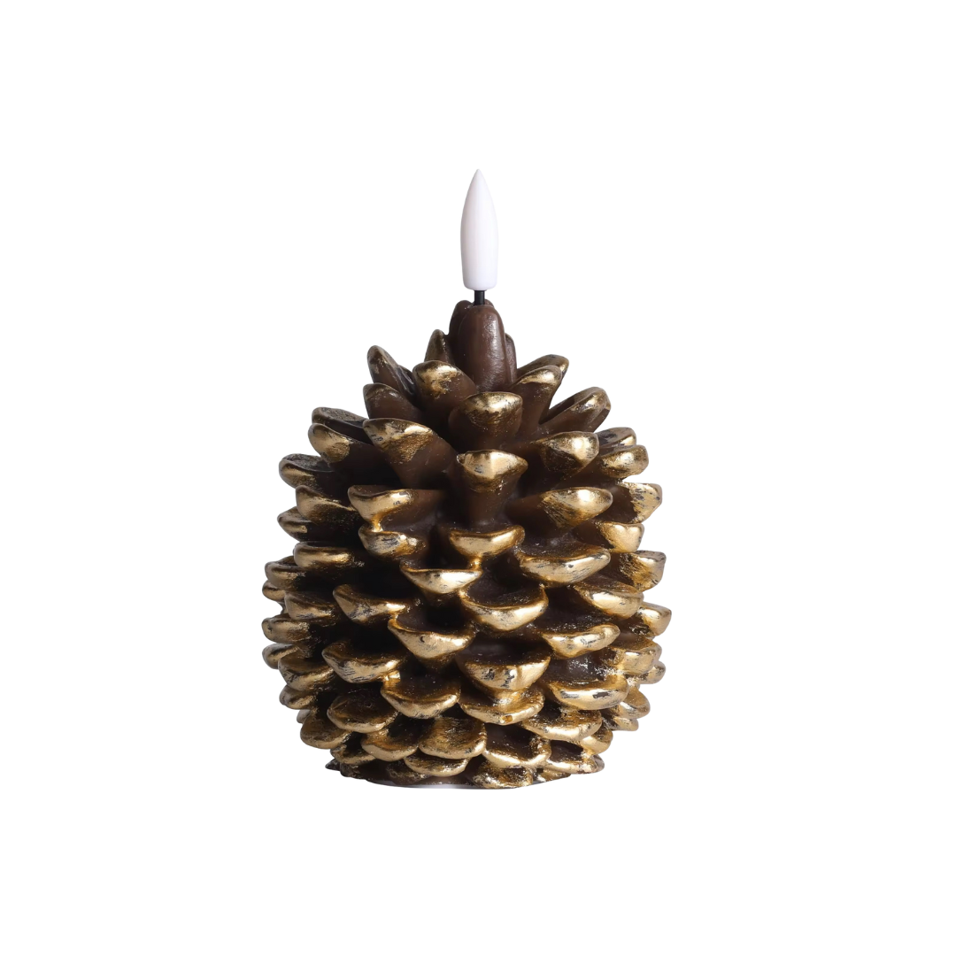 Sfeervolle LED wax kaars in dennenappelvorm, inclusief 6-uurs timer. Brengt warmte en gezelligheid in huis tijdens herfst, winter en feestdagen.