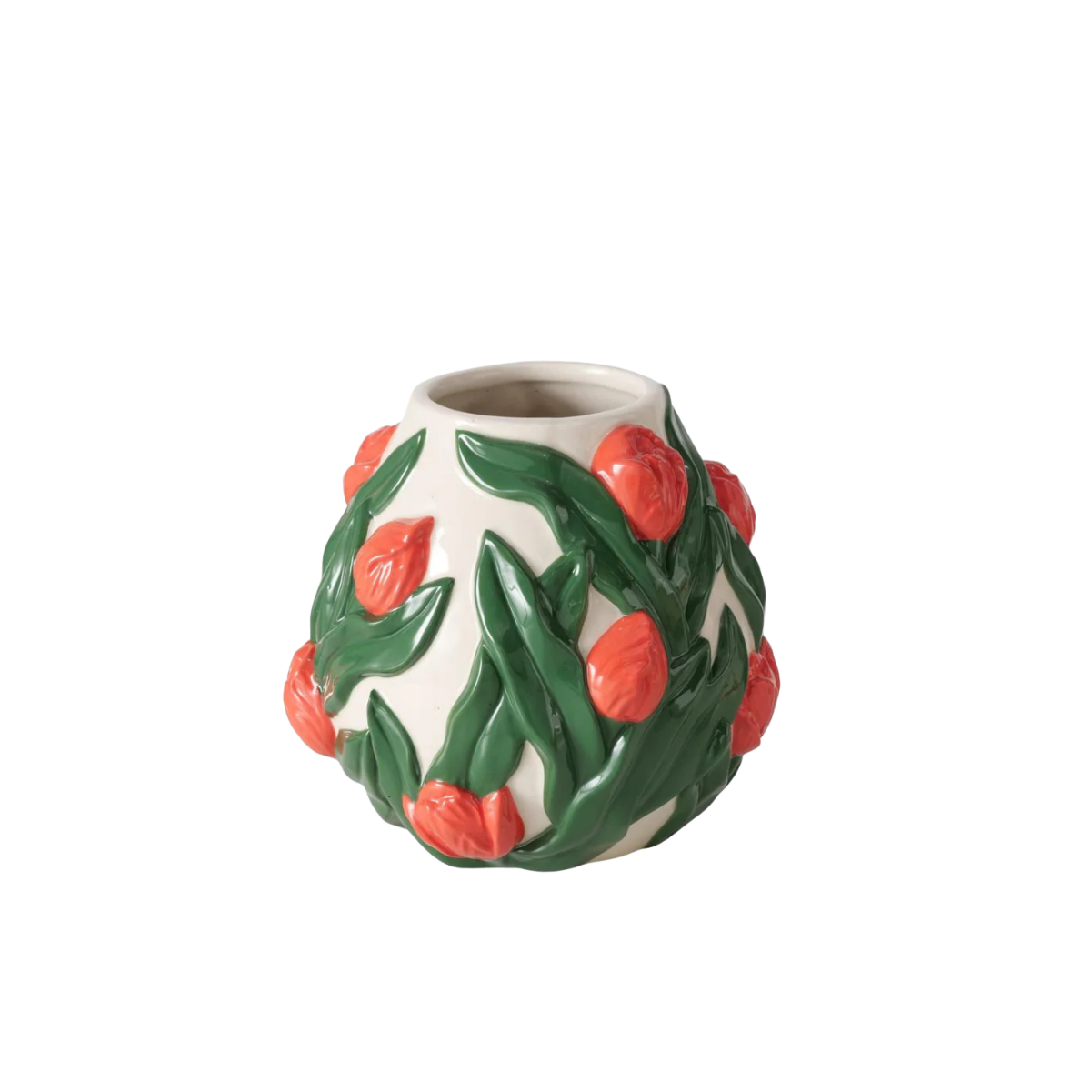 Deze porseleinen tulpenvaas is een echte eyecatcher. Het speelse design laat bloemen mooi uitkomen, maar ook zonder bloemen staat hij stijlvol als decorstuk.